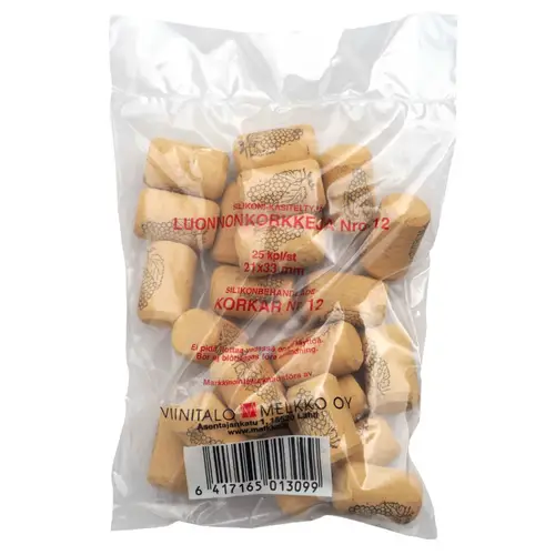 Прямая пробка для винной бутылки. Размеры (Ø x высота): 21 x 33 мм. В упаковке 25 шт.